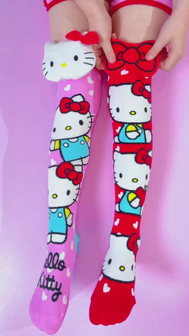 Hello Kitty like you’ve never seen her before. This adorable knee-high pair features one pink sock with a plush 3D Hello Kitty head and waving knit...